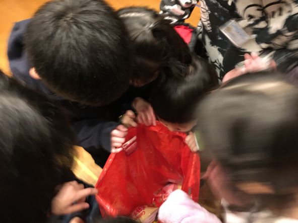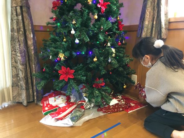 「わー!一番大きいプレゼントがあたった!」「あ!これ私が持ってきたプレゼント!」とプレゼントを持ってきた側ももらった側も、みんな楽しそうで嬉しそう♪今回は英語で書いたメッセージカードも添えてみました。1年の最後に、こんな風にHappyを交換し合ってみんな笑顔になって、見ているこちらも幸せな気分になりました☆